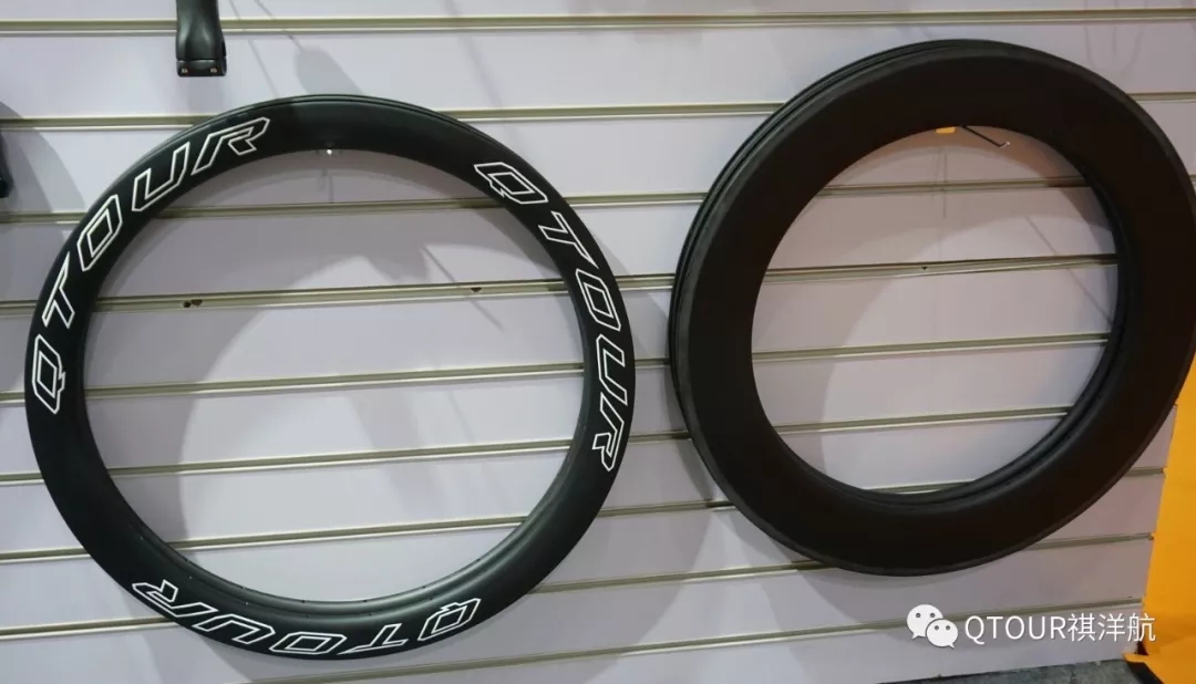 現在祺洋航的碳纖維輪圈各類已經比較完整,山地有27.5和29英寸,公路有35、50、80mm框高。公路輪圈有碟剎和圈剎版本,都是氣動胖圈設計,較大的內寬,支持真空胎。