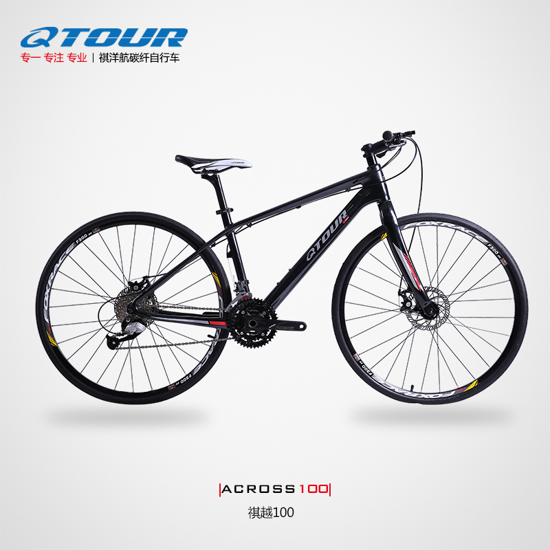 QTOUR祺越將“山馬車”發揮到極致,它使用山地車的車架,強度高,尺寸更加寬容,車手容易找到合適的騎行姿勢。為了速度,安裝了QTOUR定制的碳纖前叉,配合26英寸窄胎,不泄力、低滾阻。讓祺越擁有了公路車的速度,但有山地車的強度。